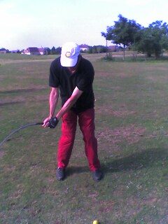 2 - Take two clubs at the same time in your hands and try to swing them the way you usualy do it with one club. After a few swing relaxing to make the exercise easier, drop one of the clubs and swing the other one. You should feel how light it is. It means that most of the time, you are to stiff and you hold the club too tight.